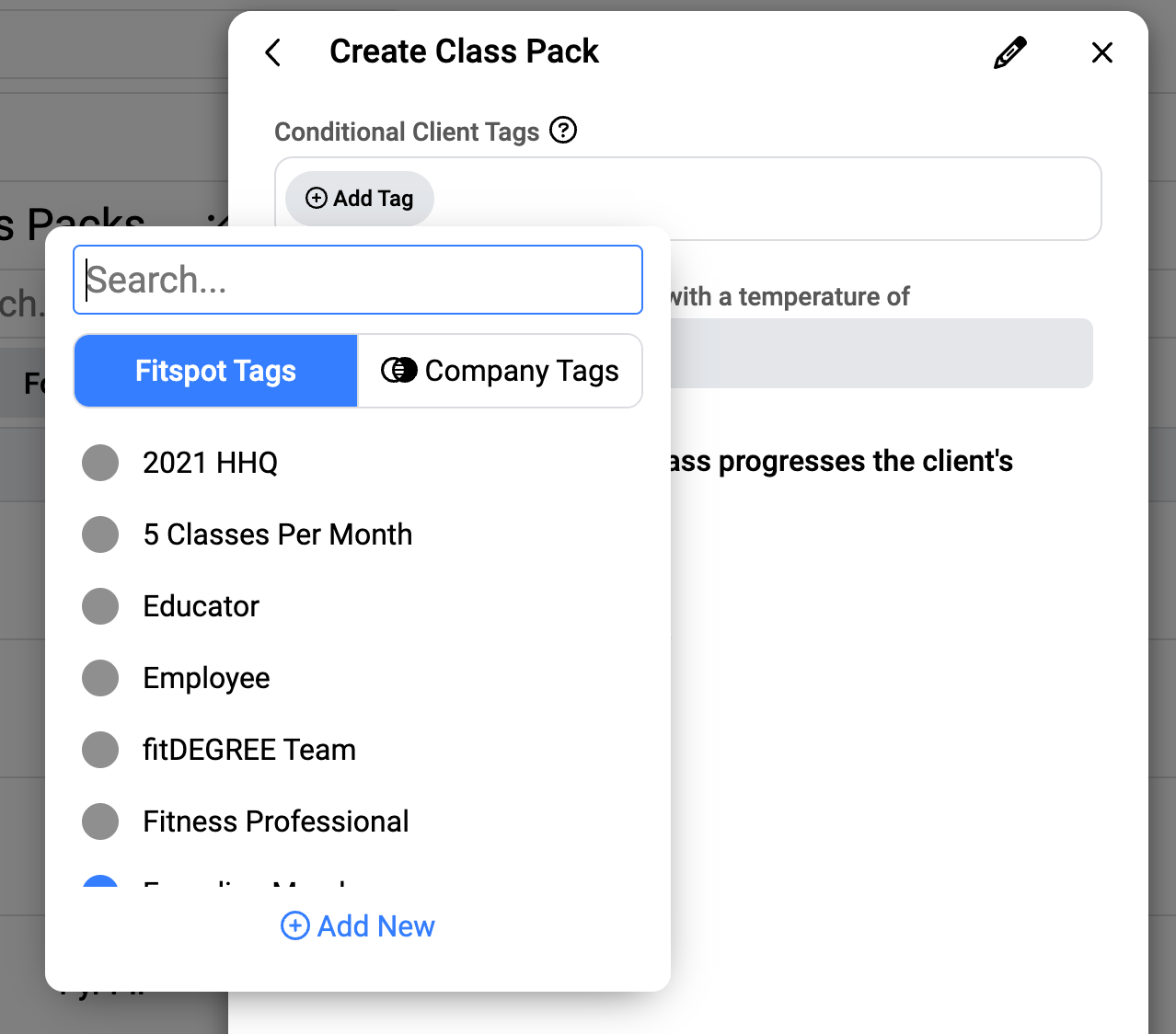 This will pop open a new tab which allows you to select a Tag or create a new Tag to link as a Condition to this particular Class Pack.